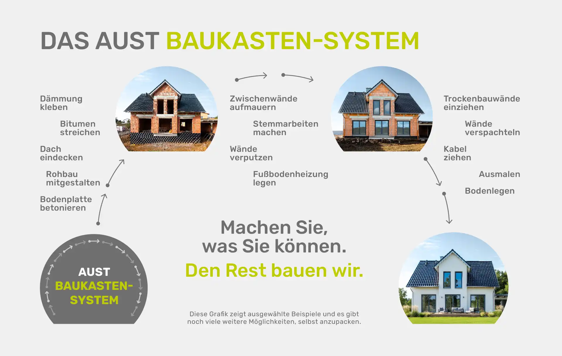 DAS AUST BAUKASTEN-SYSTEMBei jedem Gewerk bestimmen Sie selbst, wie viel Eigenleistung Sie